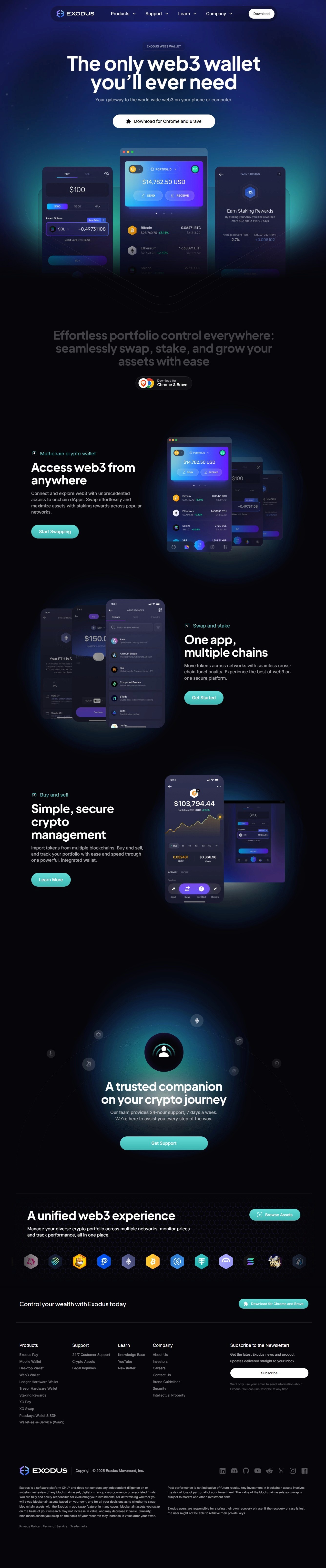 Exodus™ Web3 Wallet® combines security, usability, and Web3 functionality into a single, powerful solution. Its non-custodial design, intuitive interface, and deep integration with decentralized technologies make it an ideal choice for modern crypto users. Whether you are new to digital assets or deeply involved in the Web3 ecosystem, Exodus™ Web3 Wallet® offers a reliable and future-focused way to manage cryptocurrencies with confidence.